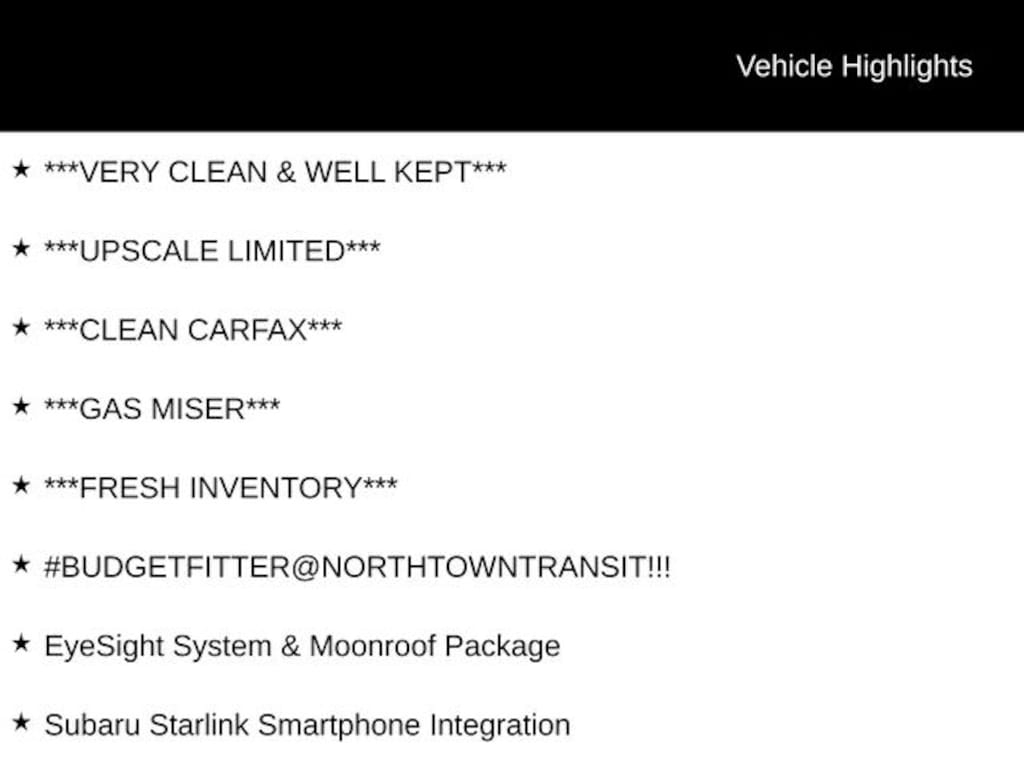 - EyeSight System & Moonroof Package